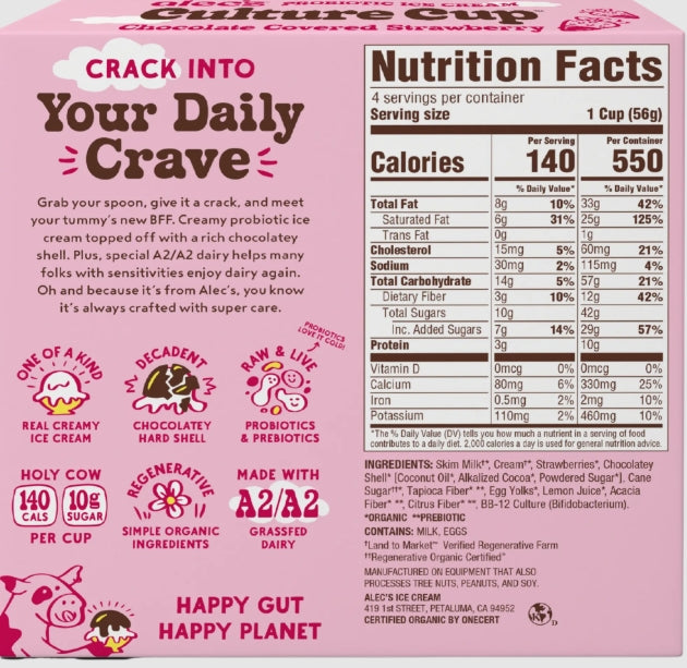 Alec's Ice Cream Culture Cup Chocolate Covered Strawberry