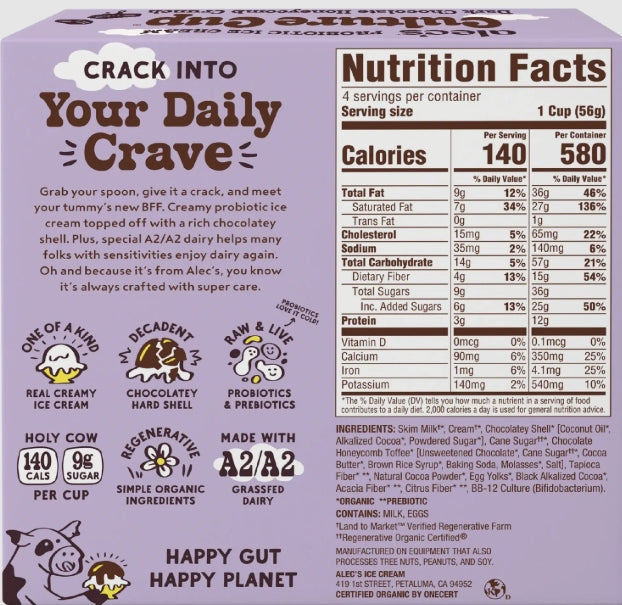 Alec's Ice Cream Culture Cup Dark Chocolate Honeycomb Crunch